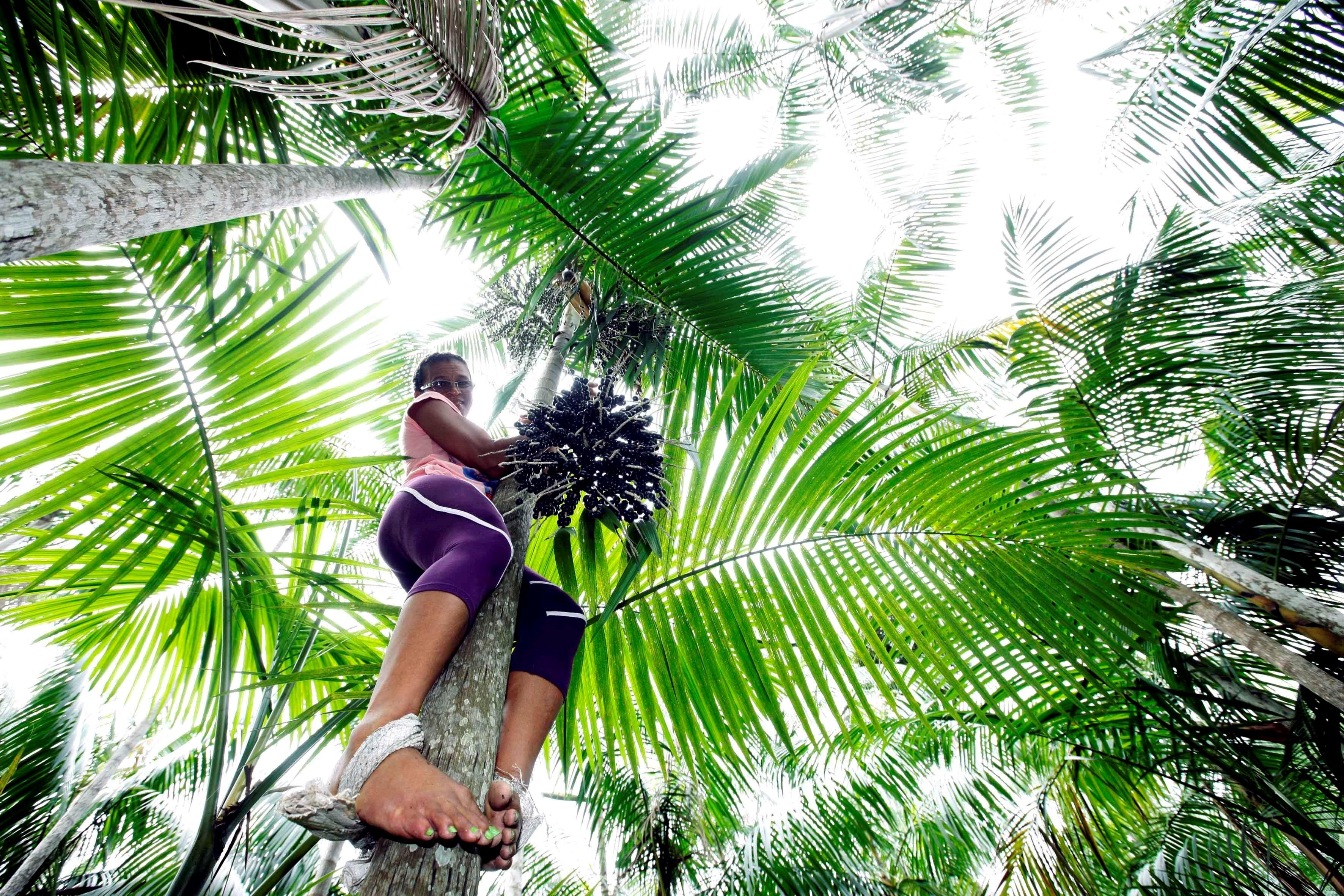 Colheita do açaí no pé